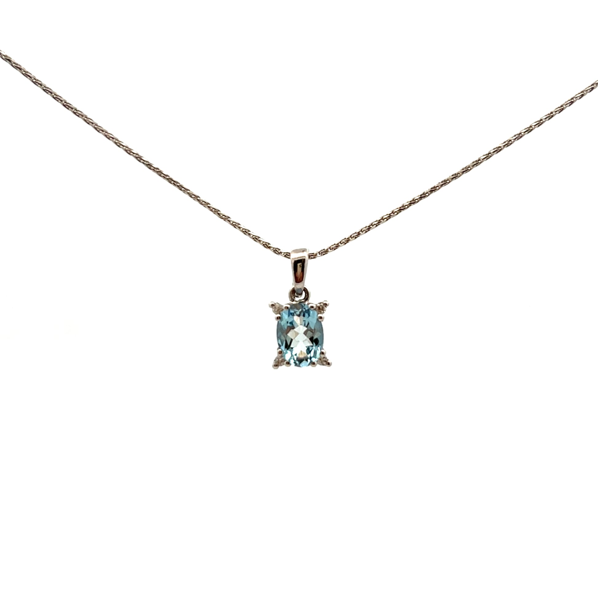 18ct White Gold Oval Aquamarine and Diamond Pendant
