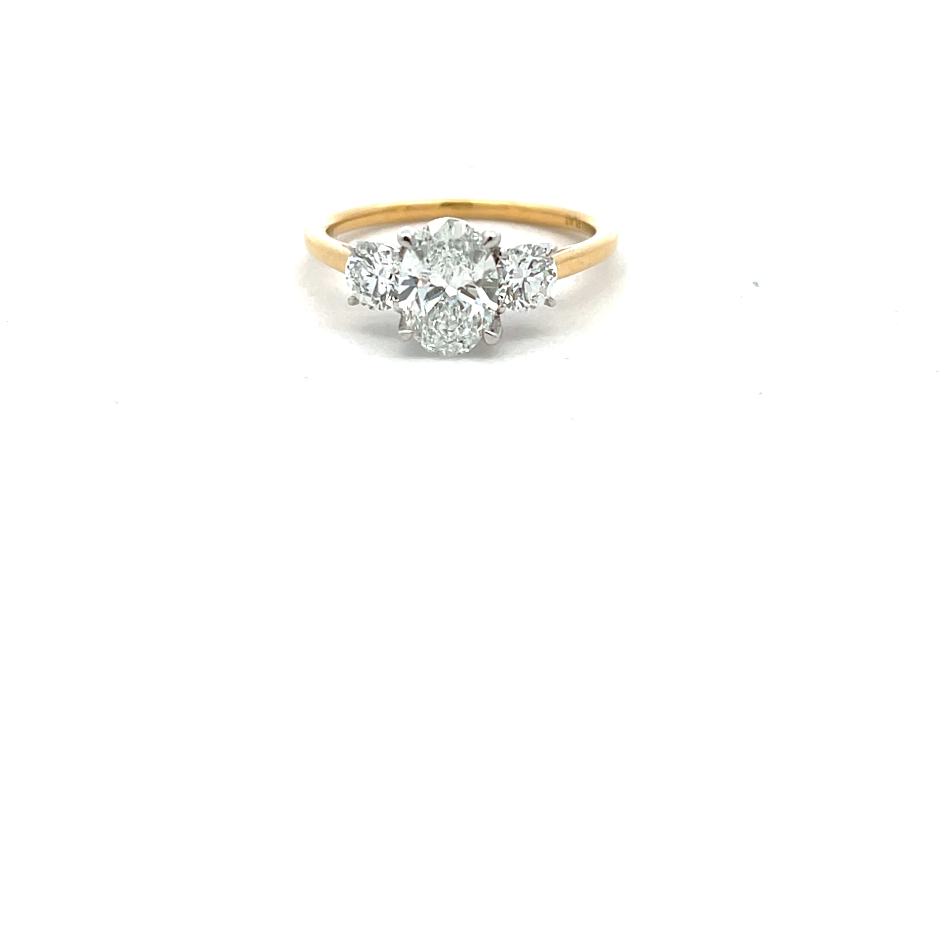 18ct Yellow Gold Laboratory Grown Diamond Oval and Brilliant Cut Three Stone Ring Size N