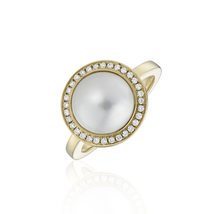 9ct Yellow Gold Mabe And Diamond Cluster Ring