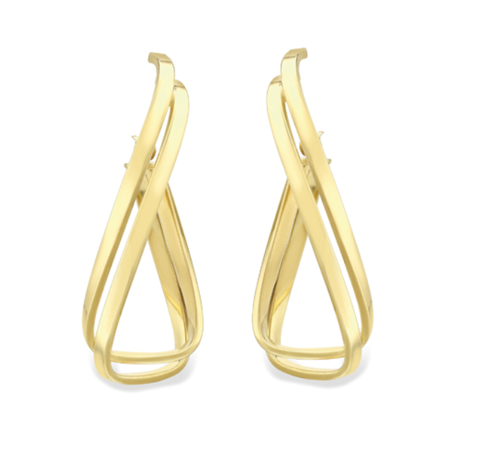 9ct Yellow Gold Two Strand Crossover Shaped Hoop Earrings