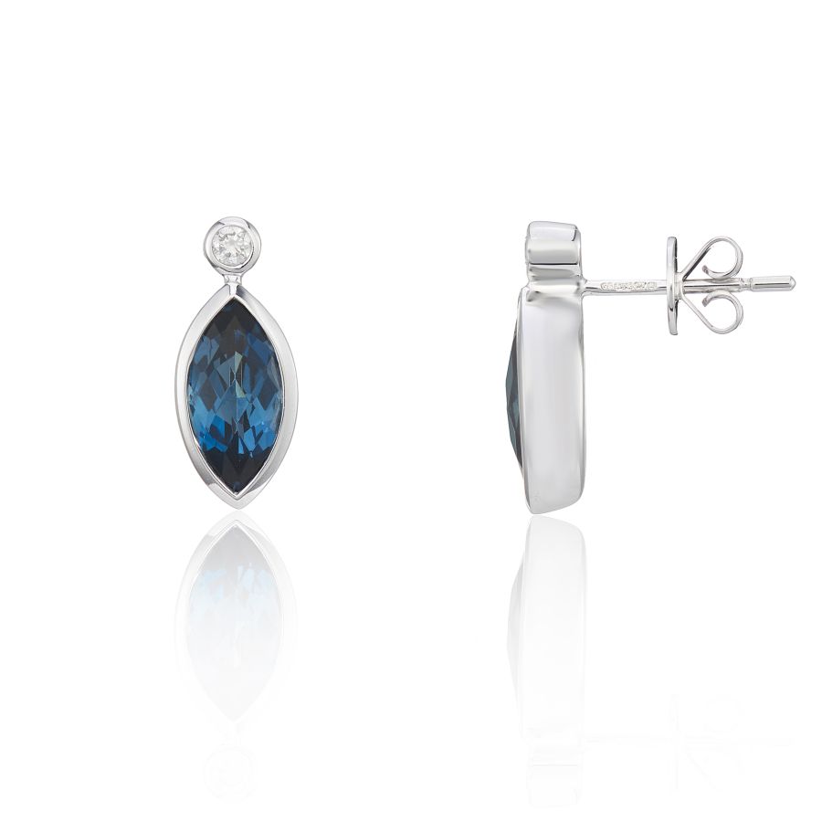 9ct White Gold London Blue Topaz And Diamond Stud Earrings