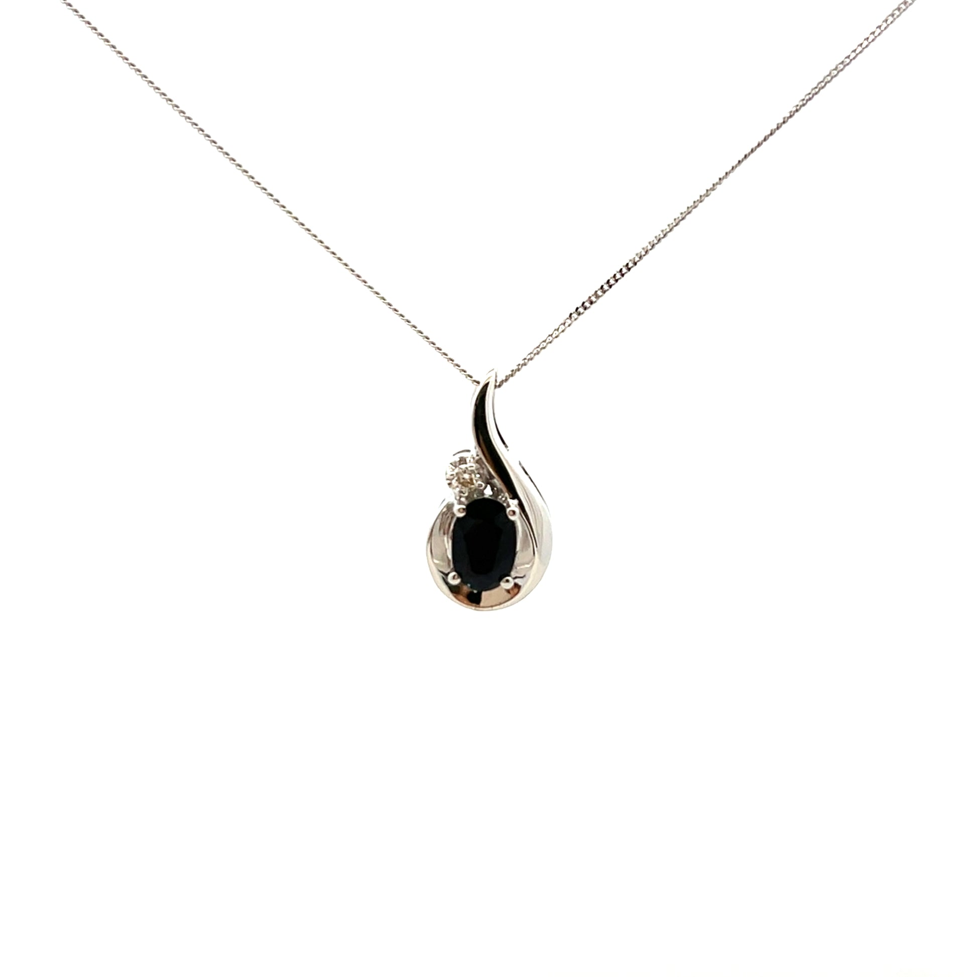 9ct White Gold Sapphire & 0.02ct Diamond Necklace
