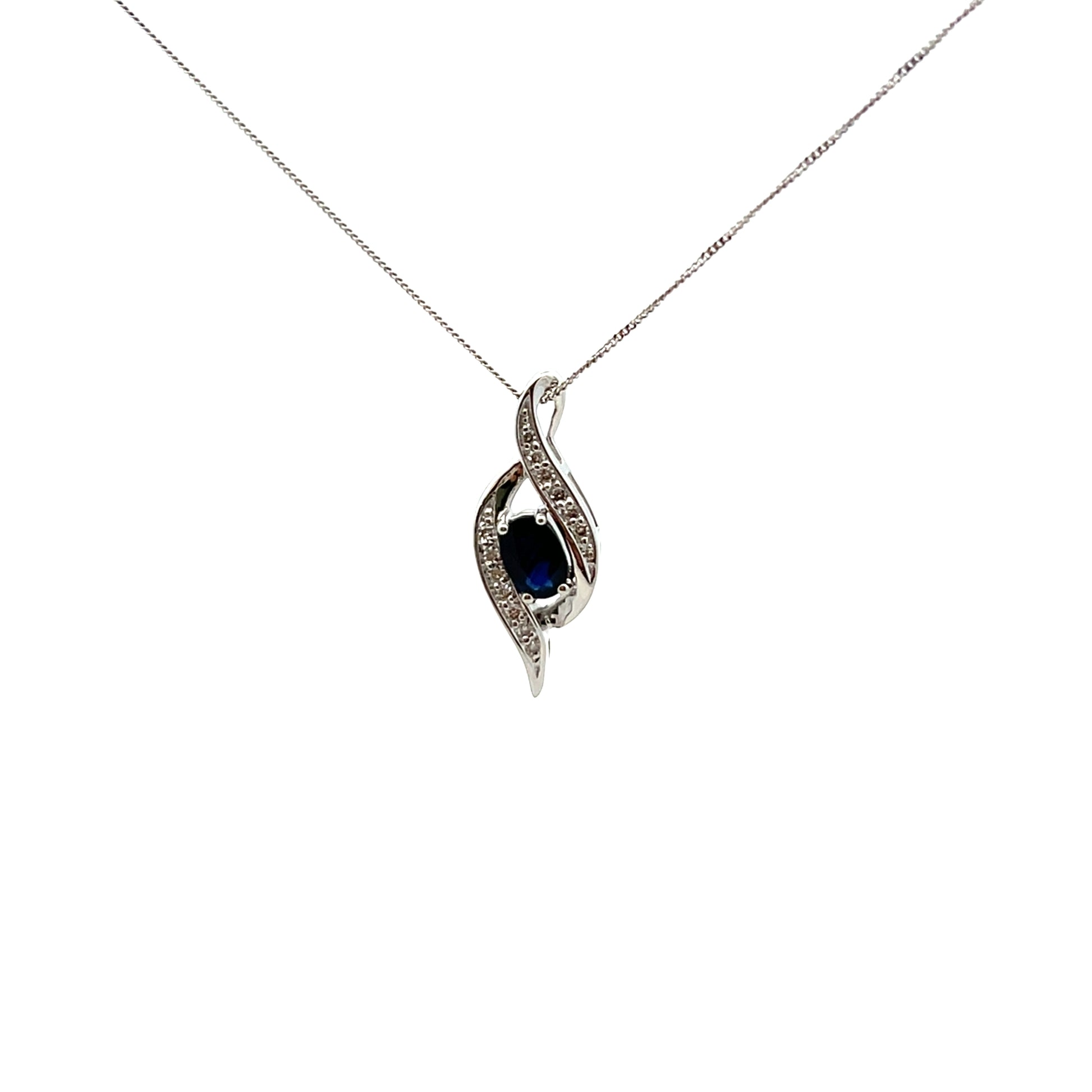 9ct White Gold Sapphire and Diamond Curve Necklace