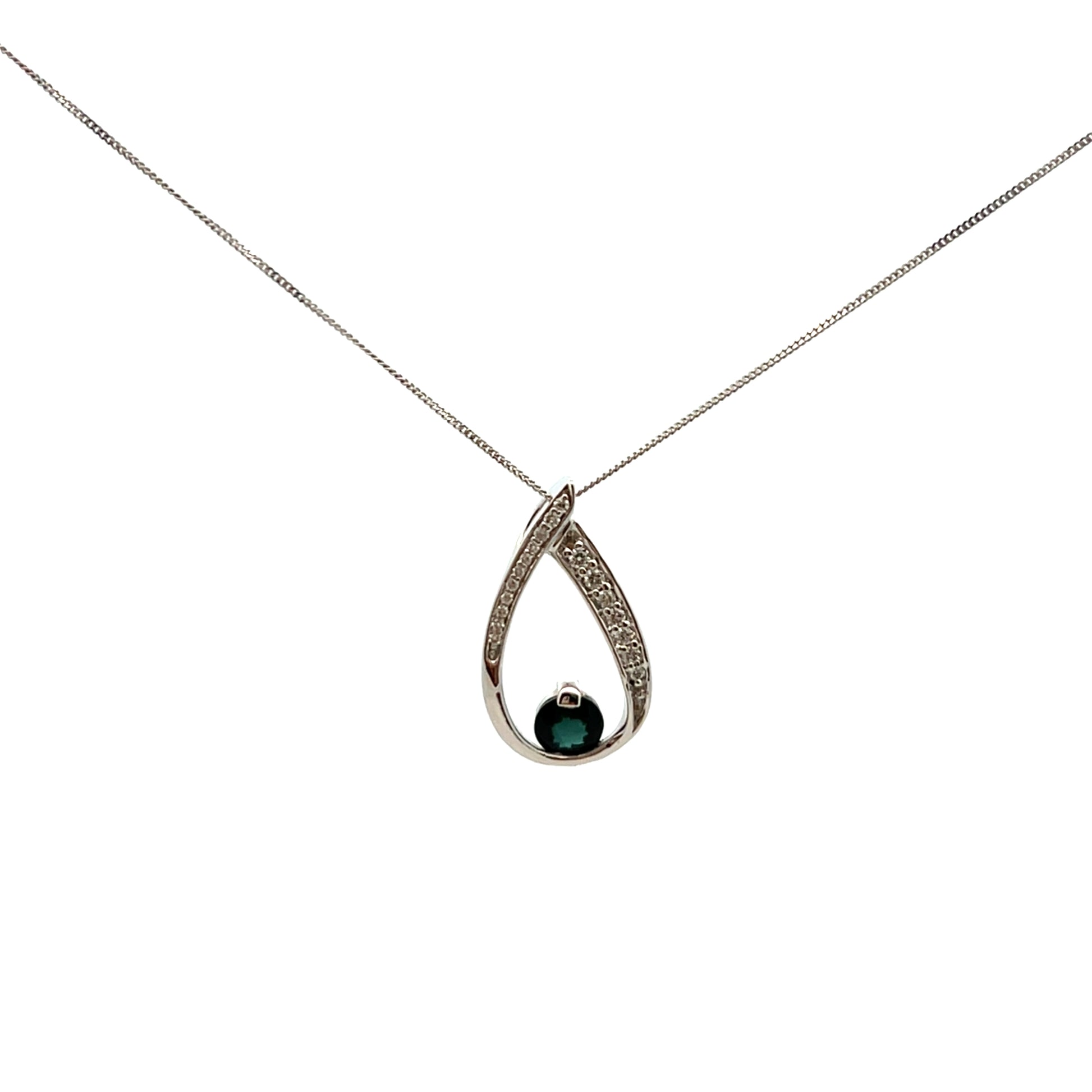 9ct White Gold Sapphire and Diamond Teardrop Necklace