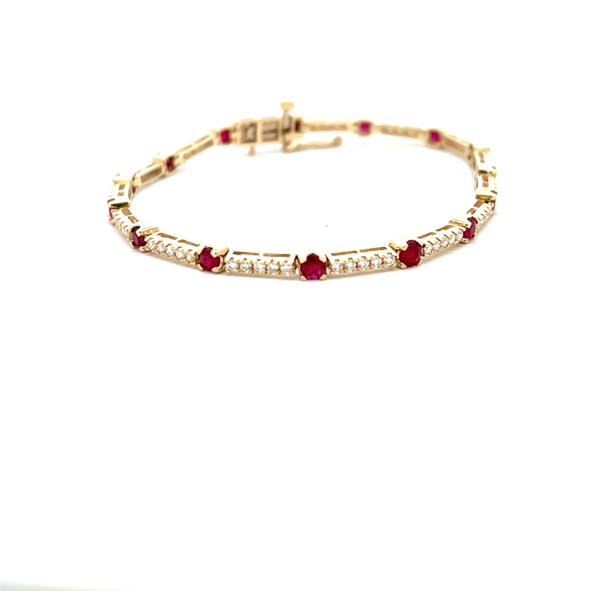 15x13mm round claw set rubies alternating with 14 bars with 5 brilliant cut diamonds
