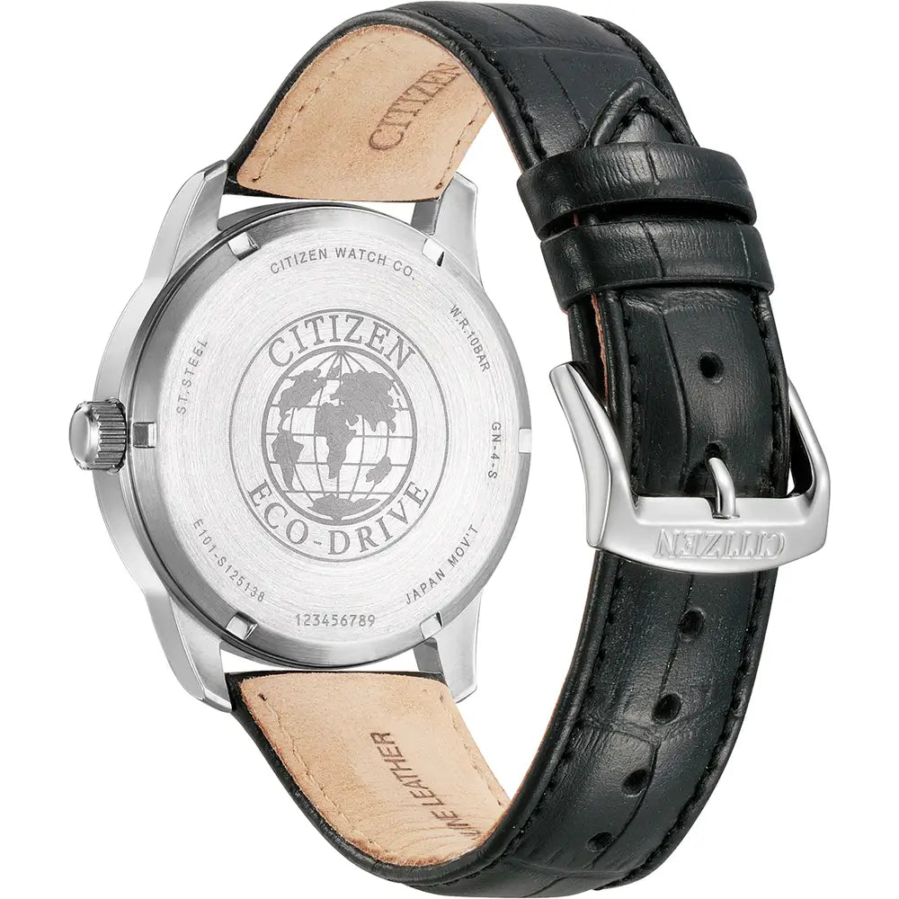 Citizen Stainless Steel White Dial Black Leather Strap Watch BM8550-14A