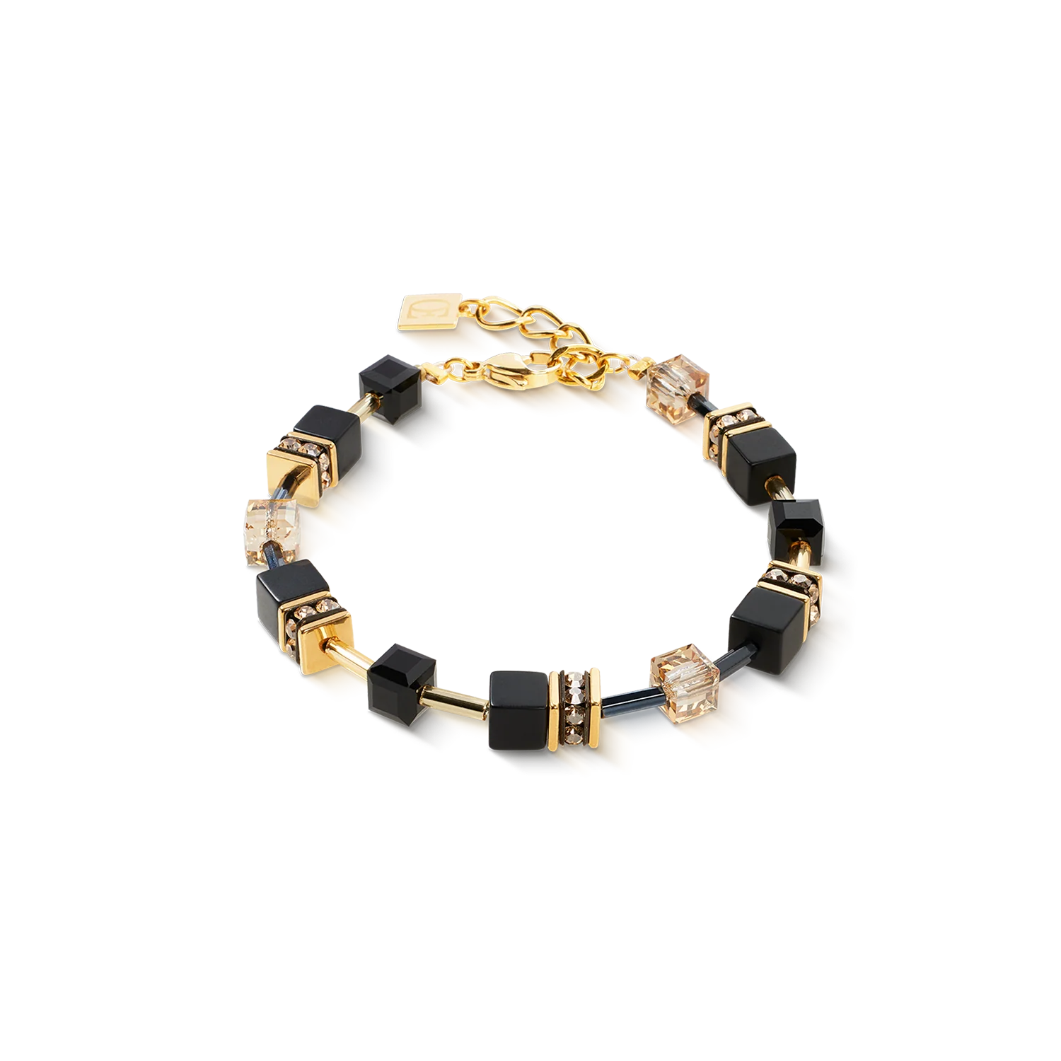 Minimalist in design, maximum in expression: the GeoCUBE® Onyx black-gold bracelet combines the natural strength of onyx with the elegant lustre of fine crystals. Gold-coloured stainless steel elements create elegant highlights and underline the graphic clarity of the design. This bracelet is just as powerful worn solo as it is in a set - a real power piece "Made in Germany".