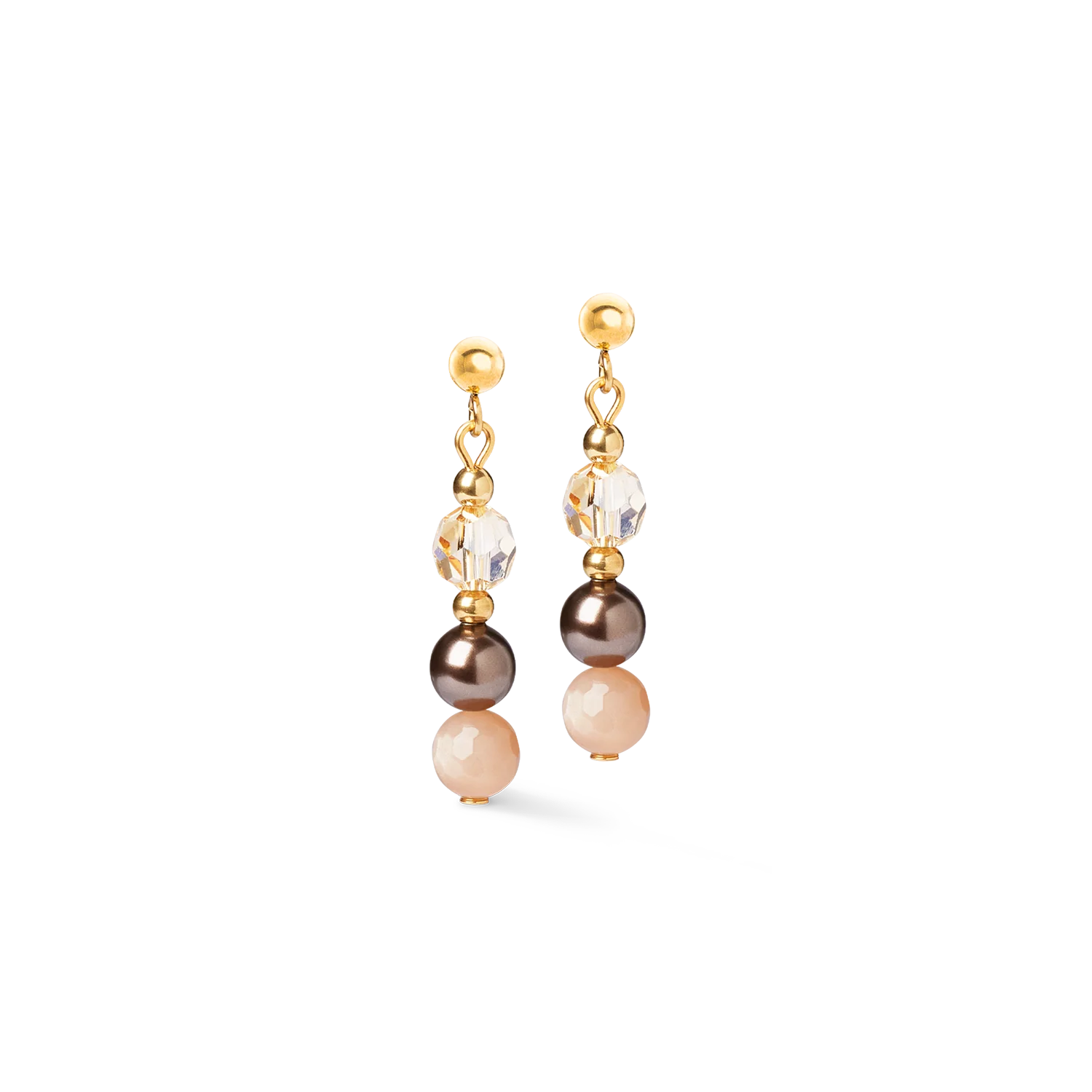 The Precious Elysia gold-brown earrings set stylish accents with their fine mix of sunstone, crystals and Crystal Pearls. With their soft shimmer in shades of gold and brown, they are the perfect complement to the necklace and bracelet in the range. The gold-plated stainless steel gives the earrings a long-lasting quality and makes them an elegant highlight for day and evening.