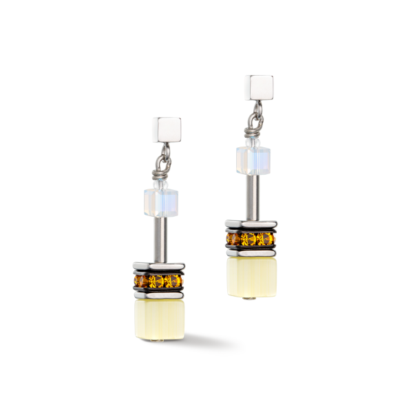 Coeur De Lion Geo Cube Yellow Crystals Drop Earrings