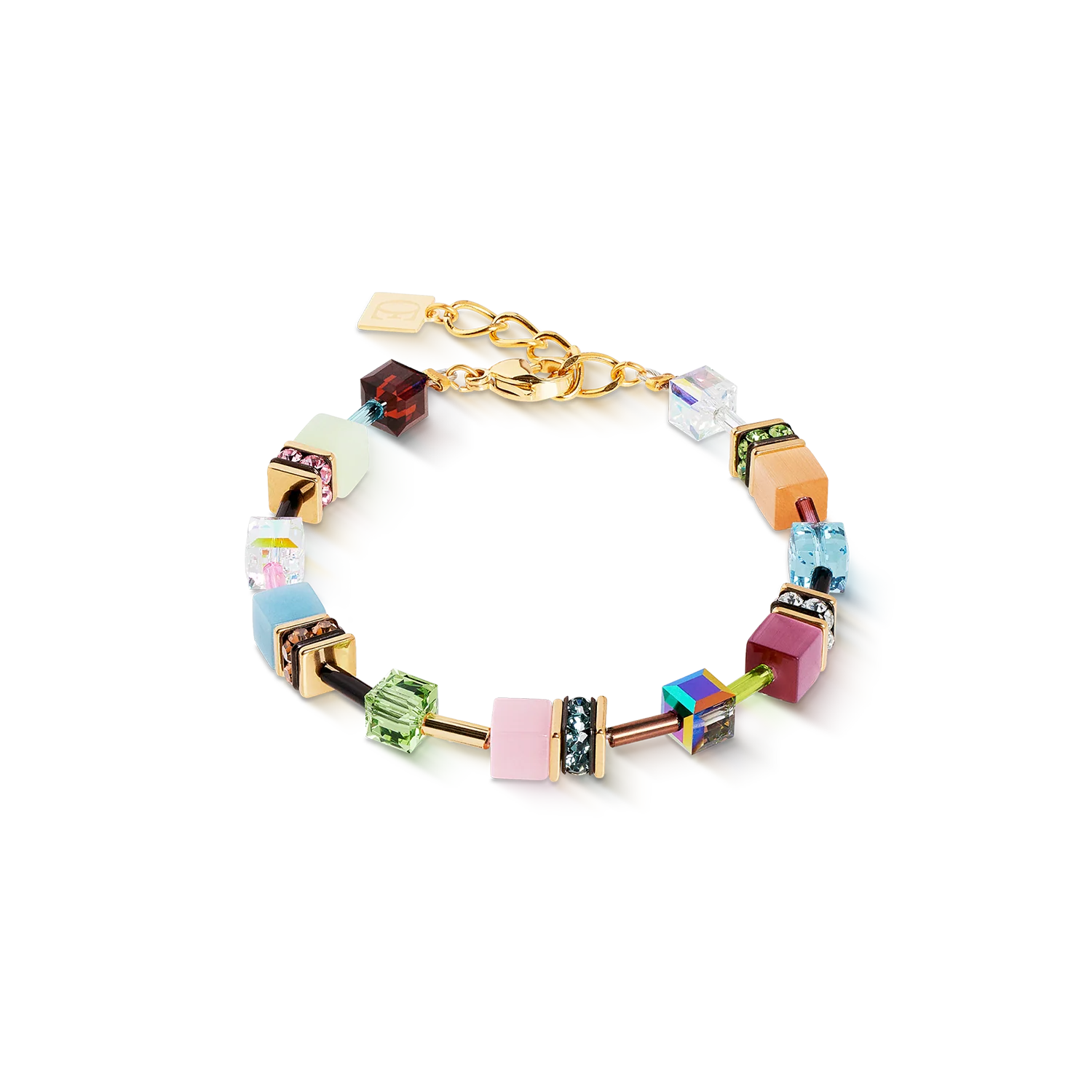 Playful, vibrant and harmonious - the Art Nouveau bracelet from the GeoCUBE® Iconic collection brings colour and character to any wrist. With its elegant balance of soft rose, green and blue tones and radiant gold, it is ideal for wearing on its own or combining with the matching necklace. For all those who see jewellery as an expression of personality.