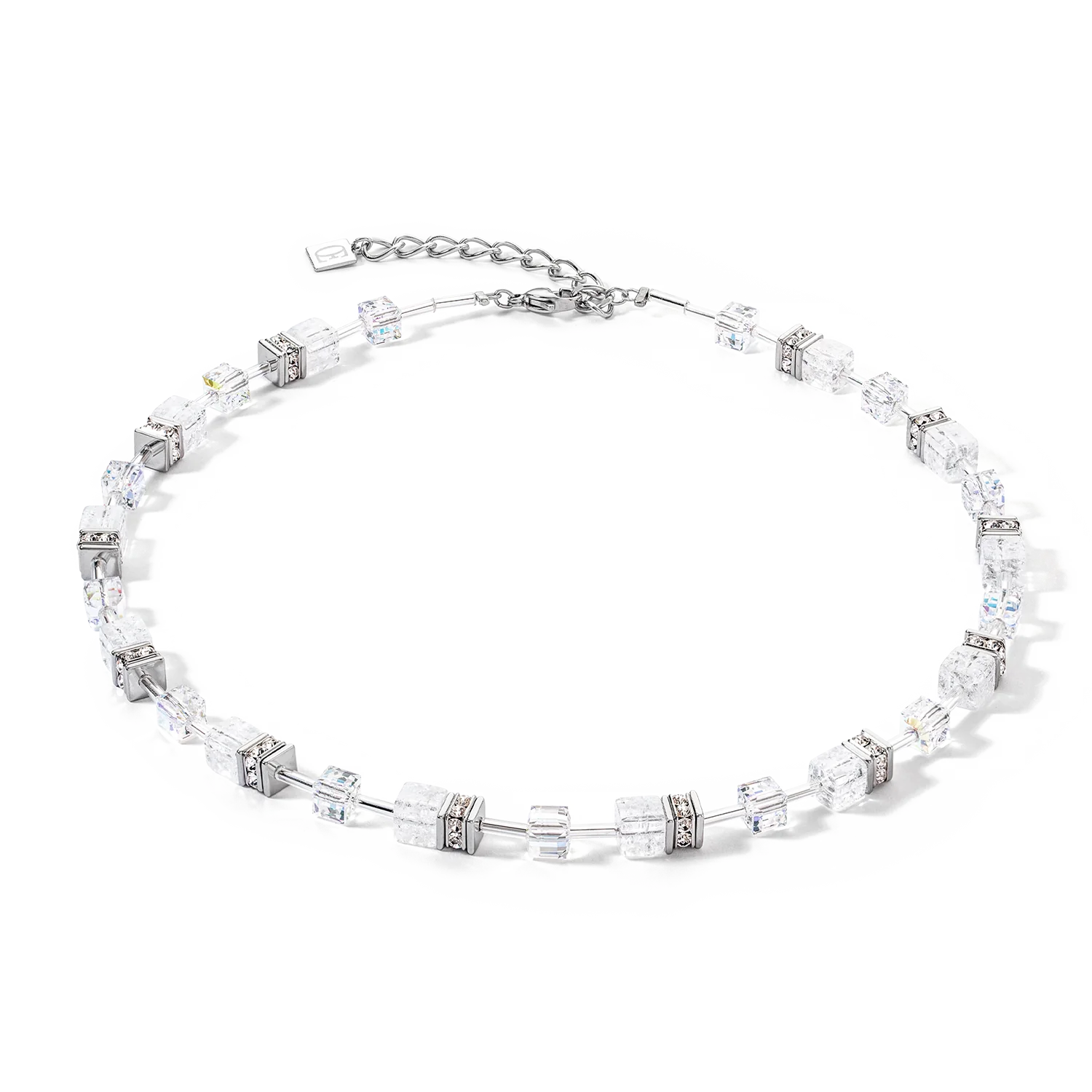 GeoCUBE® Iconic Nature necklace silver-white: timeless elegance in its purest form Experience classic beauty redefined with the GeoCUBE® Iconic Nature necklace in silver-white. This necklace combines the cool shine of silver-coloured stainless steel with colourless crystals and the fascinating, cracked rock crystal cubes. The result is a piece of jewellery that perfectly combines timeless elegance and modern sophistication. Whether as an everyday highlight or for special occasions, this necklace is the epitome of a stylish classic that never goes out of fashion. The simple colour palette combined with the unique texture of the rock crystals creates a subtle yet effective look that underlines your individuality. Discover the GeoCUBE® Iconic Nature Necklace Silver-White - a must-have for anyone who loves timeless style and subtle elegance.