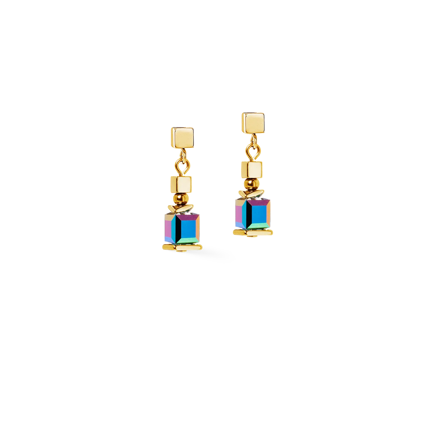 Couer De Lion Sparkling Cubes Fusion Multicolour Yellow Gold Plated Drop Earrings