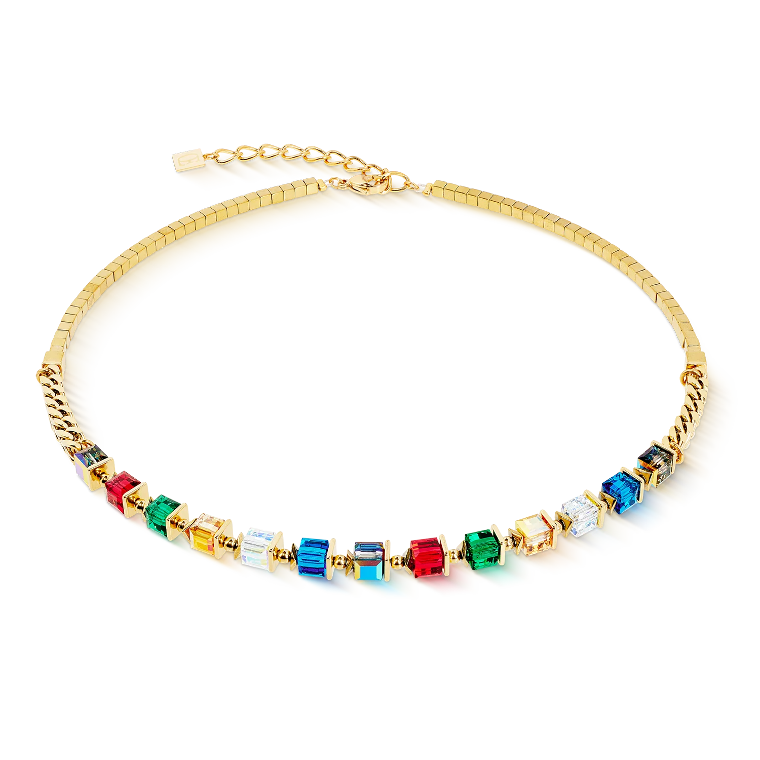 Couer De Lion Yellow Gold Plated Multicoloured Cubes Necklace