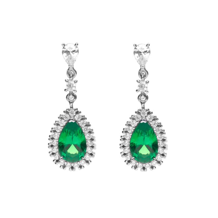 Diamonfire Green Zirconia Teardrop Earrings with Pave Surround