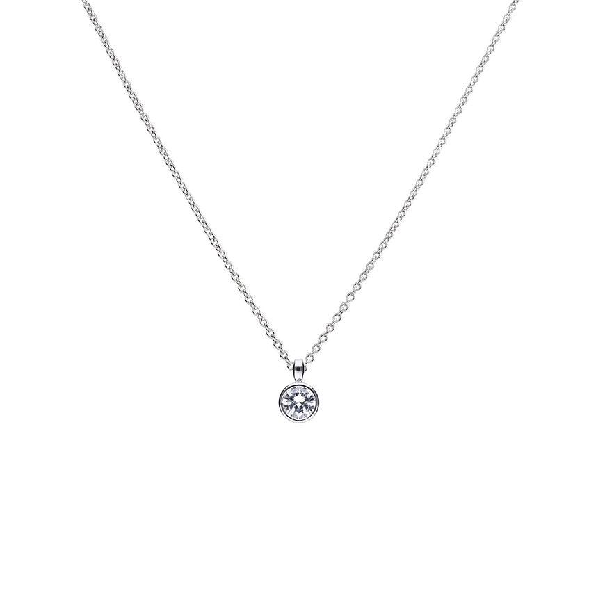 This simple bezel set 1.5ct zirconia solitaire necklace is a classic style that makes the perfect addition to any jewellery box. Featuring Diamonfire cubic zirconia stones which are cut specially with 57 facets just like a real brilliant cut diamond. The product also is made from sterling silver with a triple plated finish of palladium, platinum and rhodium for an almost life-long tarnish protection.