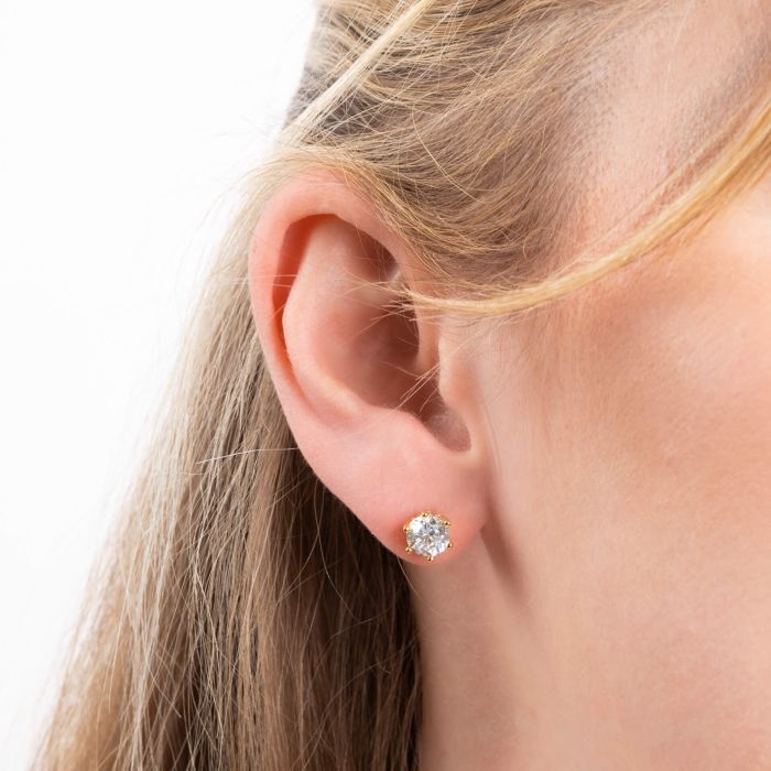 Diamonfire Yellow Gold Plated 2ct Cubic Zirconia 6 Claw Earrings