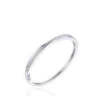 Sterling Silver Two Strand Plain and Cubic Zirconia Bangle