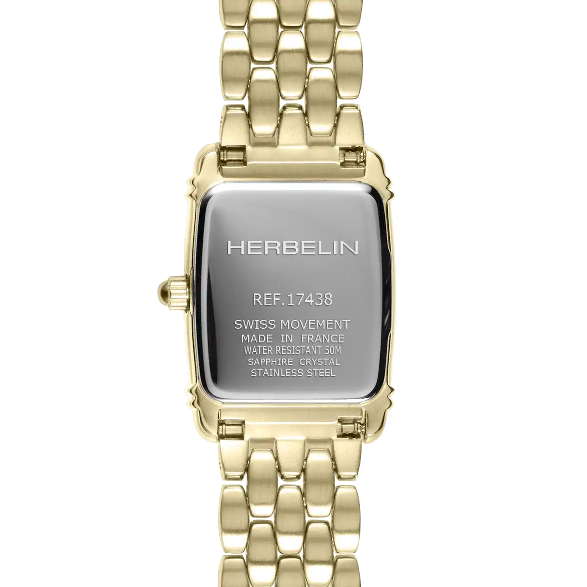 Herbelin Ladies Art Deco Tonneau Yellow Gold PVD Bracelet Watch 17438BP1N22