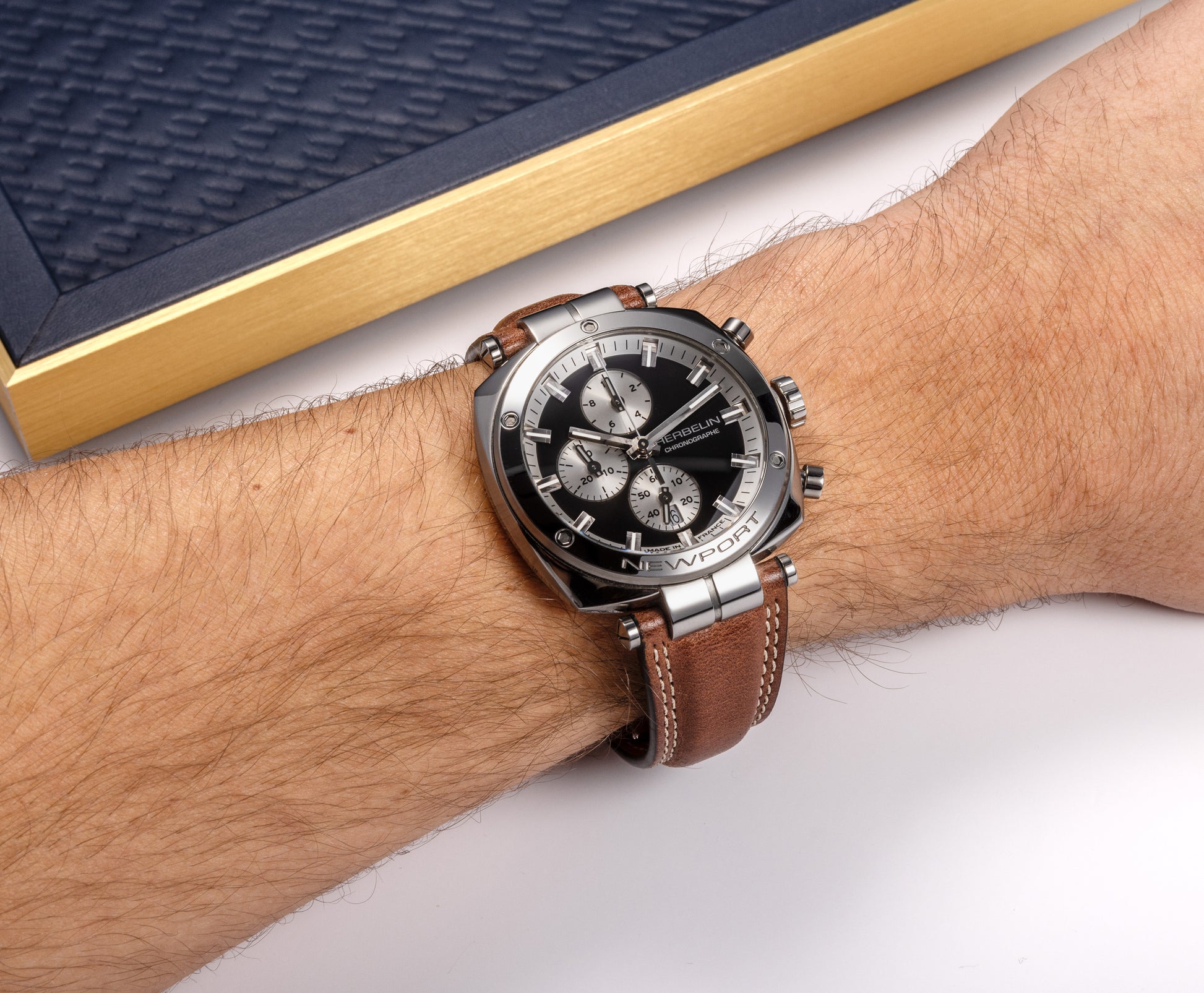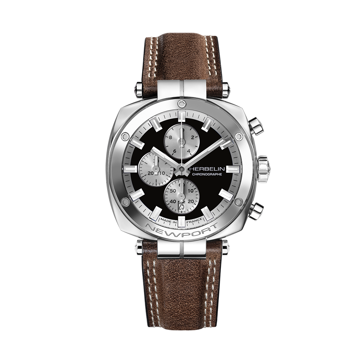 Herbelin Newport Heritage Chronograph Black Dial Steel Strap Watch 35664AP24BR