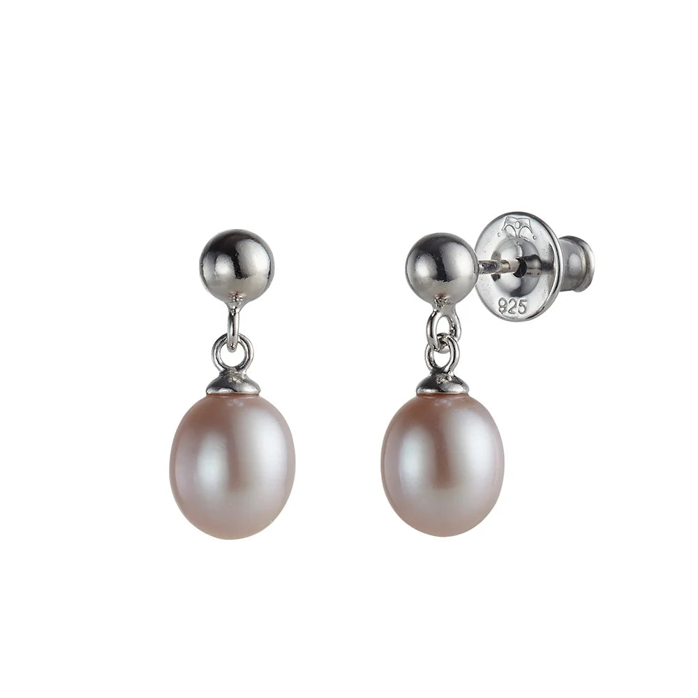Jersey Pearl Pink 7mm Freshwater Cultured Pearl Drop Earrings