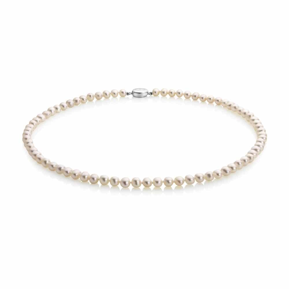 Jersey Pearl Sterling Silver White Freshwater Cultured Pearl 5x5.5mm 18'' Necklet