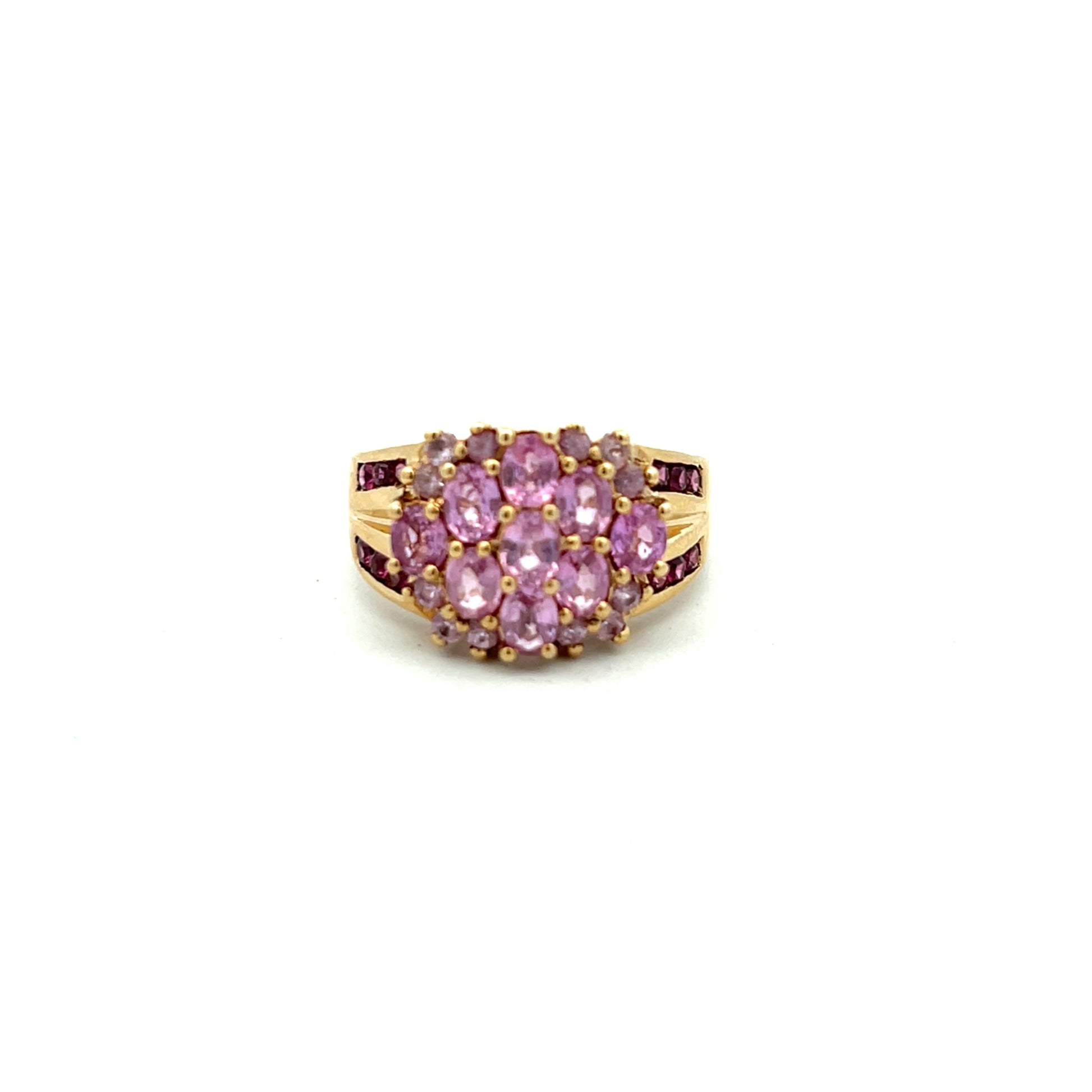 Pre-Owned 9ct Gold Pink Sapphire and Pink Tourmaline Ring Size P