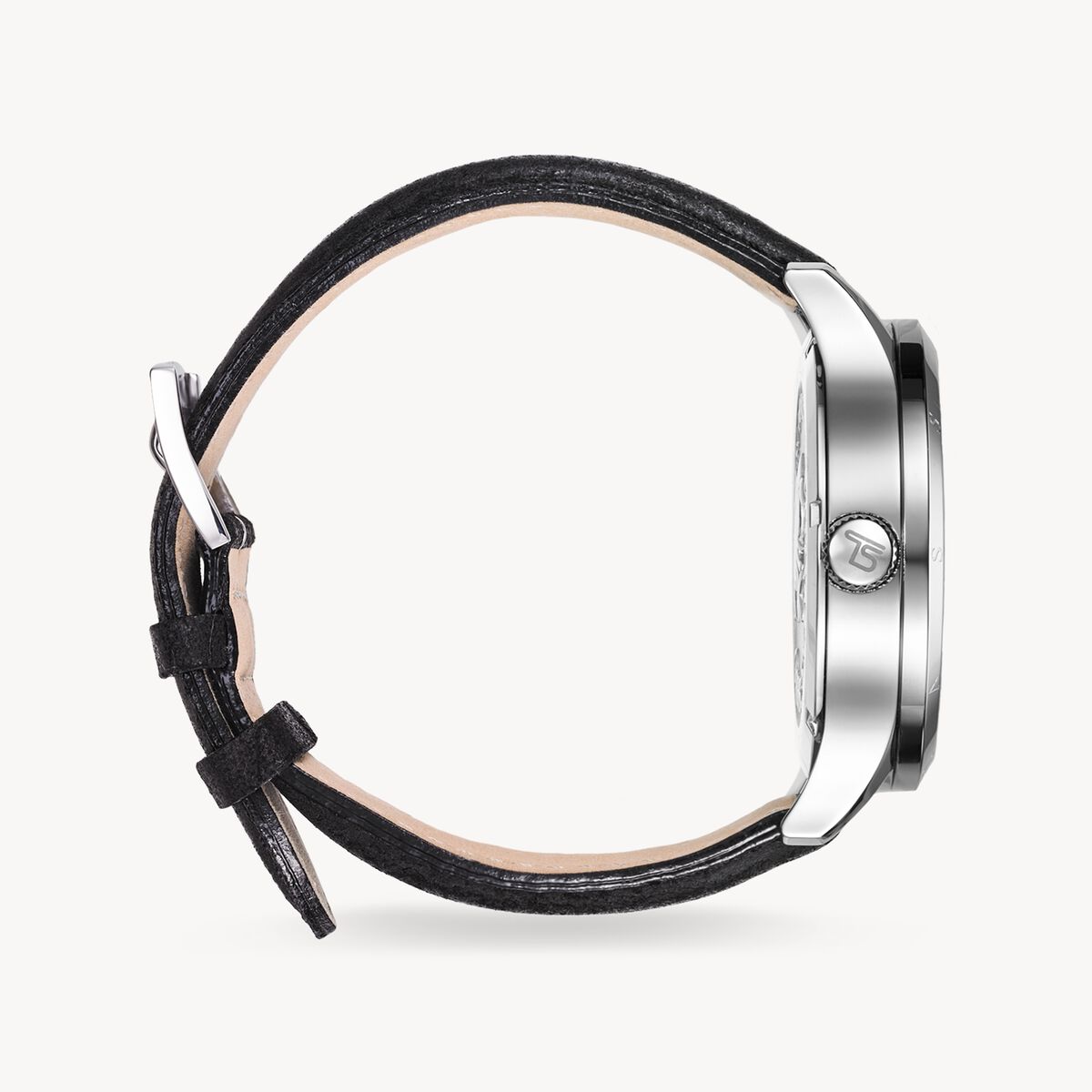 Rebel look in black and stainless steel. The distinctive three-hand watch impresses with a three-dimensional, stylised skull on a black dial, emphasising the rocking and unconventional side of the wearer. The black leather strap in vintage look is a particular highlight.