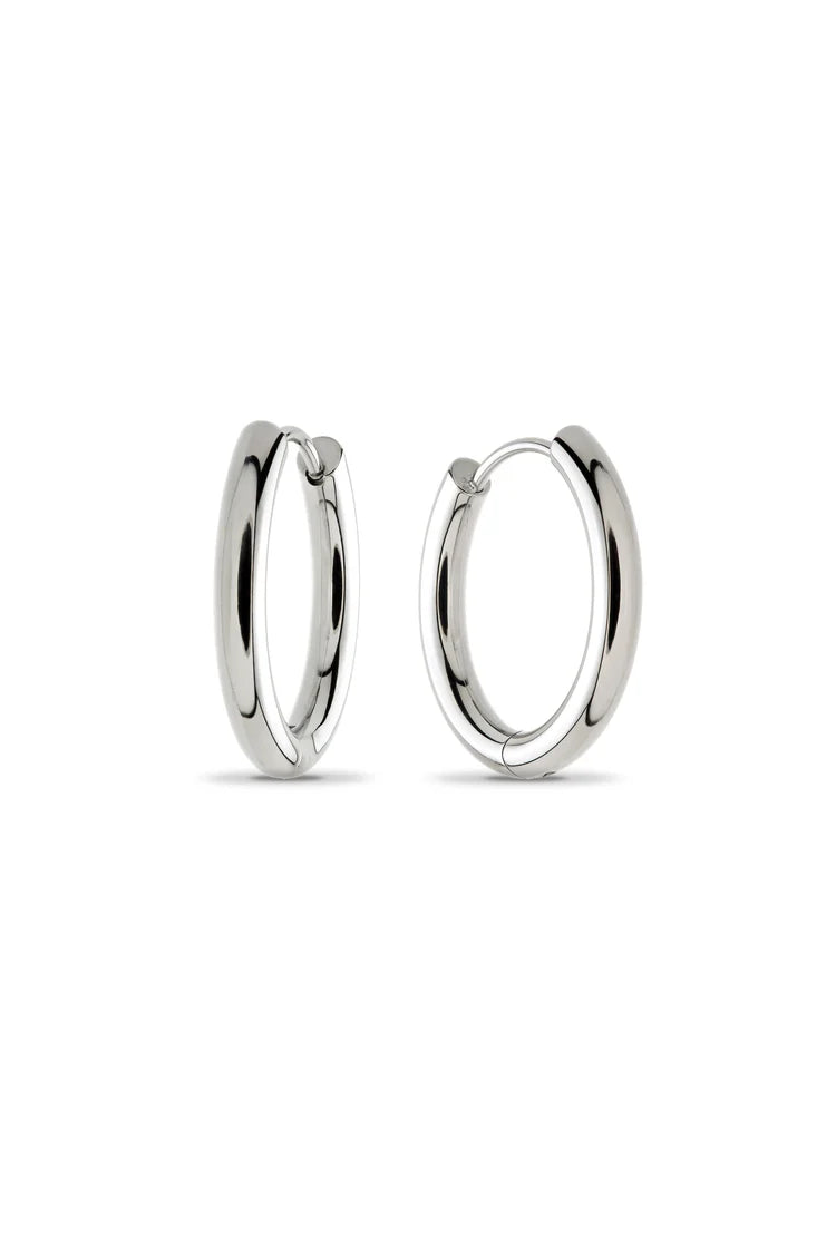 A sleek, smooth, everyday essential — these classic hoop earrings are your fuss-free staples. With their softly rounded shape and secure hinged closure, these stylish hoops are designed to sit comfortably in the lobe for an effortless, everyday look. Available in polished platinum or gold finishes.