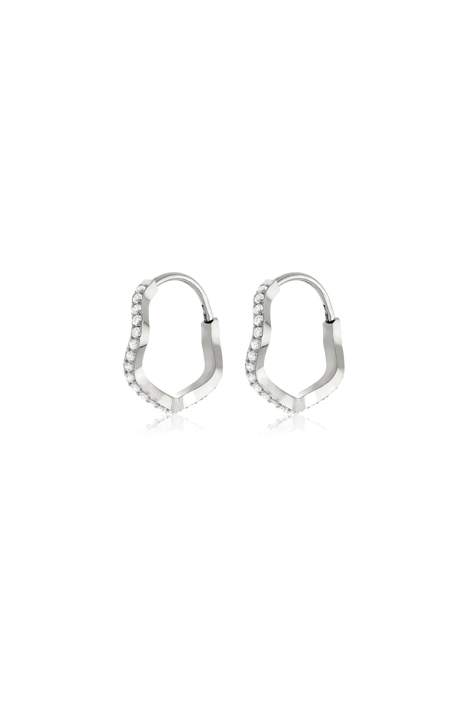 Introducing the Rina Platinum Titanium Wave Pavé Hoop Earrings, a stunning blend of elegance and modern design.